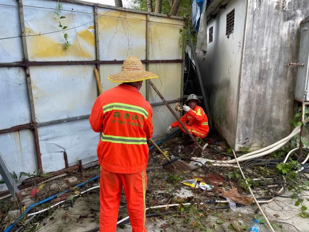 在行動(dòng)現(xiàn)場(chǎng),90 名森沐環(huán)境工作人員身著統(tǒng)一工作服,精神飽滿,干勁十足。他們深入各個(gè)背街小巷,對(duì)衛(wèi)生死角、積水區(qū)域、垃圾堆放點(diǎn)等重點(diǎn)部位進(jìn)行全面清理。有的工作人員手持掃帚,清掃衛(wèi)生死角的落葉和垃圾;有的清理丟棄已久的大件垃圾;有的則拿著鏟子,仔細(xì)清理路邊的雜草和淤泥。同時(shí),兩輛垃圾車往返穿梭,及時(shí)將清理出來(lái)的垃圾運(yùn)走,確保環(huán)境整潔衛(wèi)生。