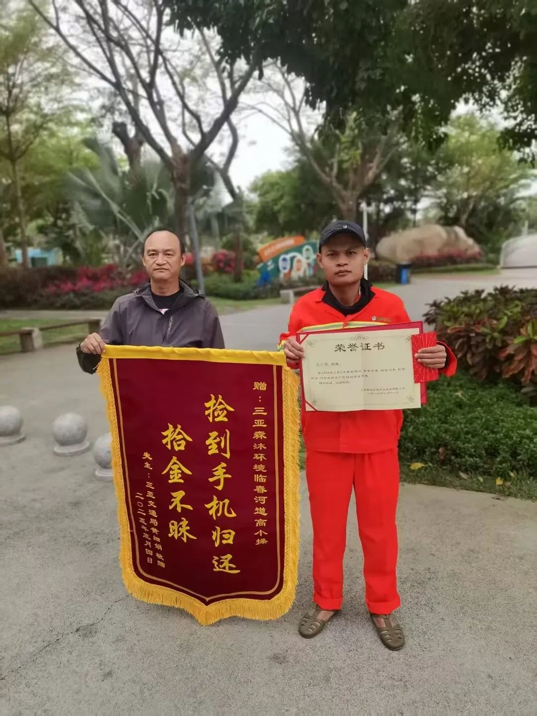 3月3日,保潔部臨春河下游保潔員高小操同志在榕根公園執(zhí)勤期間,撿到一部丟失的手機(jī),