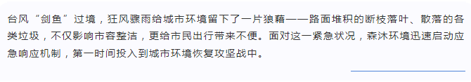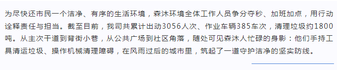 2017年7月創(chuàng)立于海南省三亞市(原名為三亞森沐清潔服務(wù)有限公司,于2020年12月更名為三亞森沐環(huán)境產(chǎn)業(yè)服務(wù)有限公司),是專業(yè)從事環(huán)衛(wèi)保潔和綠化養(yǎng)護(hù)的服務(wù)企業(yè),多年來(lái)我們致力于人居環(huán)境的改善和城市美化的提升,不斷的開拓創(chuàng)新,為城市環(huán)境可持續(xù)發(fā)展貢獻(xiàn)力量。
