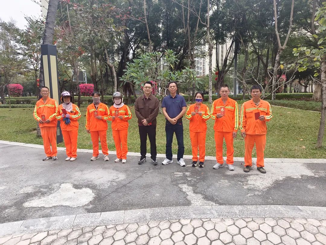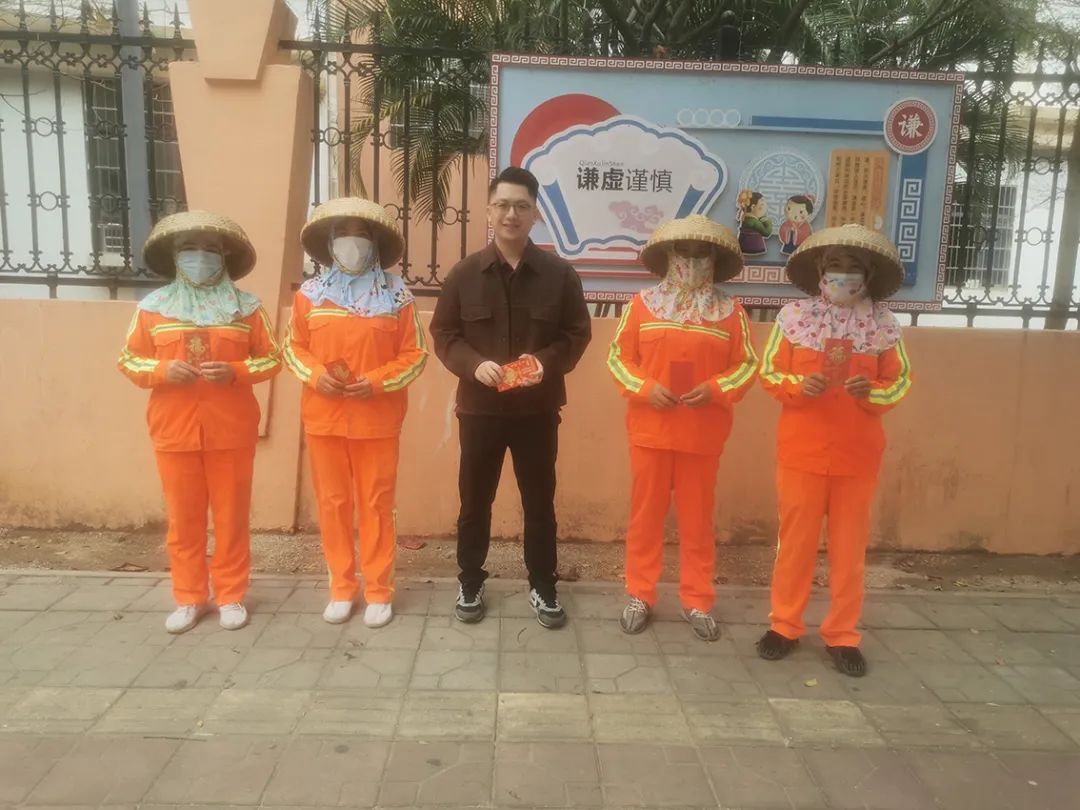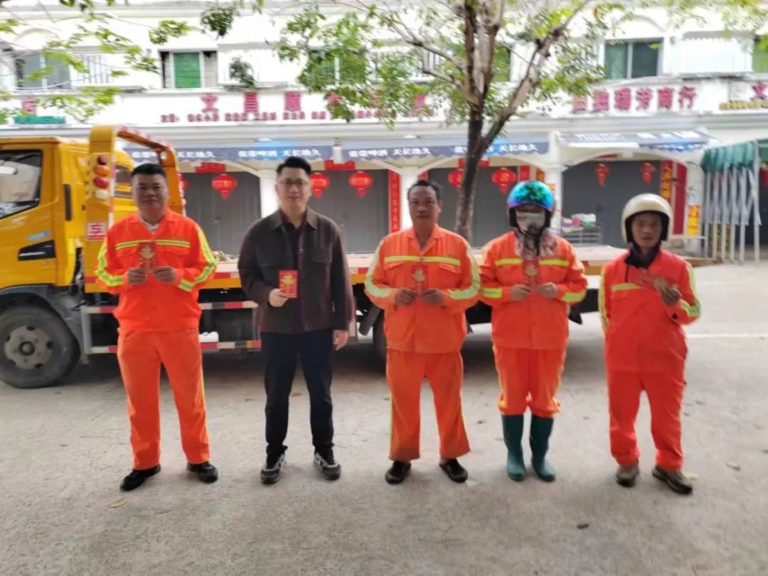 2024年2月10日大年初一,森沐環(huán)境總經(jīng)理助理、運營總監(jiān)柯俊帶著公司的關(guān)愛和溫暖走訪吉陽區(qū)各項目區(qū)域,看望慰問了一線的職工并發(fā)放開門紅包,對他們春節(jié)期間堅守崗位,全力保障城市環(huán)境的干凈整潔,確保群眾歡樂祥和過春節(jié)表示衷心感謝,并致以最美好的誠摯問候和新春祝福,也預(yù)祝新的一年開門大吉。